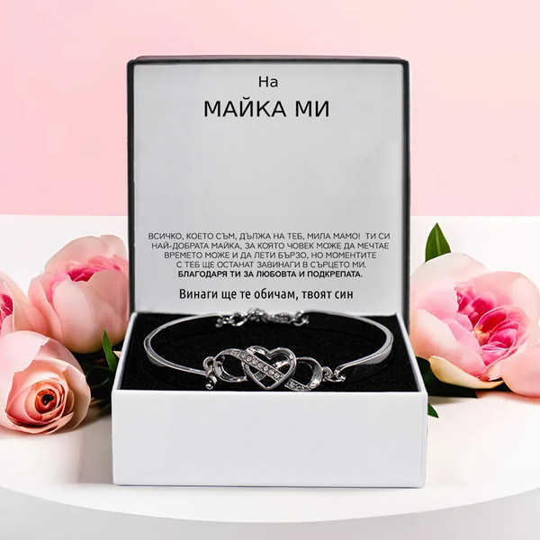 Сърце със символ на безкрайността винаги ще й напомня колко много я обичате, тъй като тя ще носи този символ на любовта близо до сърцето си. Това е красиво напомняне за вашата любов, което винаги ще остане с нея, независимо от разстоянието.