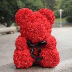 Красиво плюшено мече, изработено от нежни изкуствени рози, символизира вечната любов и грижа. Това не само е елегантна декоративна част, но и ще бъде идеалното напомняне за вашата любов, което никога не избледнява – точно като розите, от които е направено.