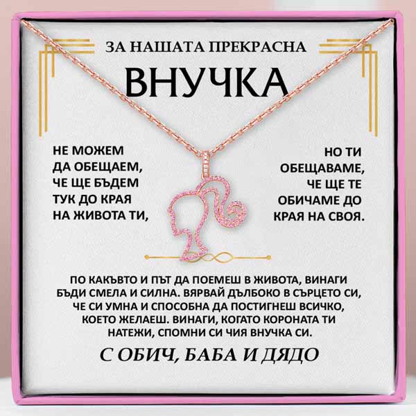 Опаковка: Огърлицата Барби Розово злато ще пристигне в красива подаръчна кутия с автограф 🎁, което я прави идеален подарък за някой специален човек или удоволствие за вас самите.