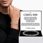 Представяме ви NEXUSLET– олицетворение на изтънченост и стил в мъжките бижута. Повишете нивото на аксесоарите си с тази изискана гривна с верижка за тенис, старателно изработена, за да излъчва лукс и елегантност.