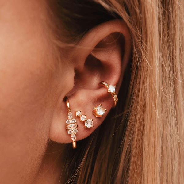 Обицата за уши Olivia е въплъщение на елегантността. Тя е във формата на малък пръстен с кристали отстрани и по-голям камък в средата. Ще се удивите колко страхотно стои на ухото ви. Тя се съчетава чудесно с всяка комбинация от обеци, която изберете. Обецата се предлага като единична бройка и е подходяща за комбиниране с всички останали обеци.