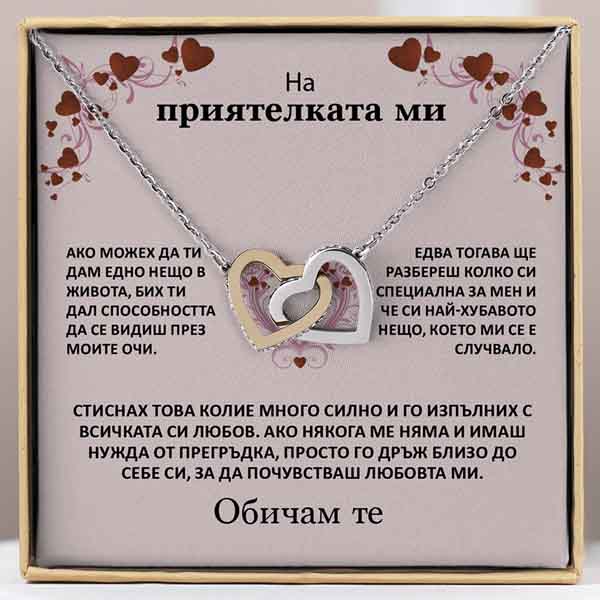 Нашето ослепително колие с преплетени сърца JULIET_HEARTS включва две красиви сърца, украсени с кристали от кубичен цирконий. Сияещо като звезда в небето, това регулируемо колие с преплетени сърца е идеалният аксесоар за ежедневно носене. Не избледнява, не ръждясва, не променя цвета си и не потъмнява. Не чакайте, ДОБАВЕТЕ В КОЛИЧКАТА и вземете отстъпка!