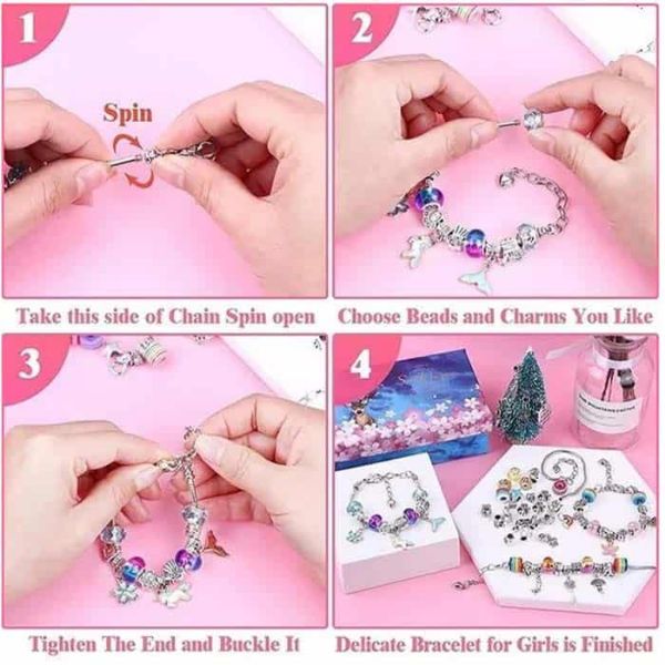 Създайте персонализирани гривни, които отговарят на вашите предпочитания и стил. Комплектът включва до 60 различни цветни мъниста и висулки, което ви дава свободата да украсявате гривните си както ви харесва!
