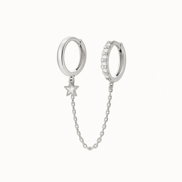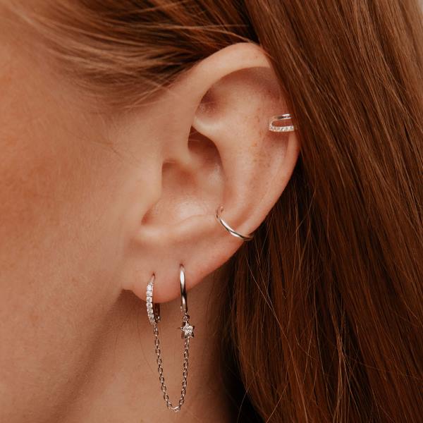 Обецата Satina определено е нещо специално. Двете обеци, свързани с верижка, винаги ще се открояват на ухото ви и ще гарантират, че другите ще забележат чувството ви за естетика. Обецата се предлага като единична бройка и е подходяща за комбиниране с всички други обеци.